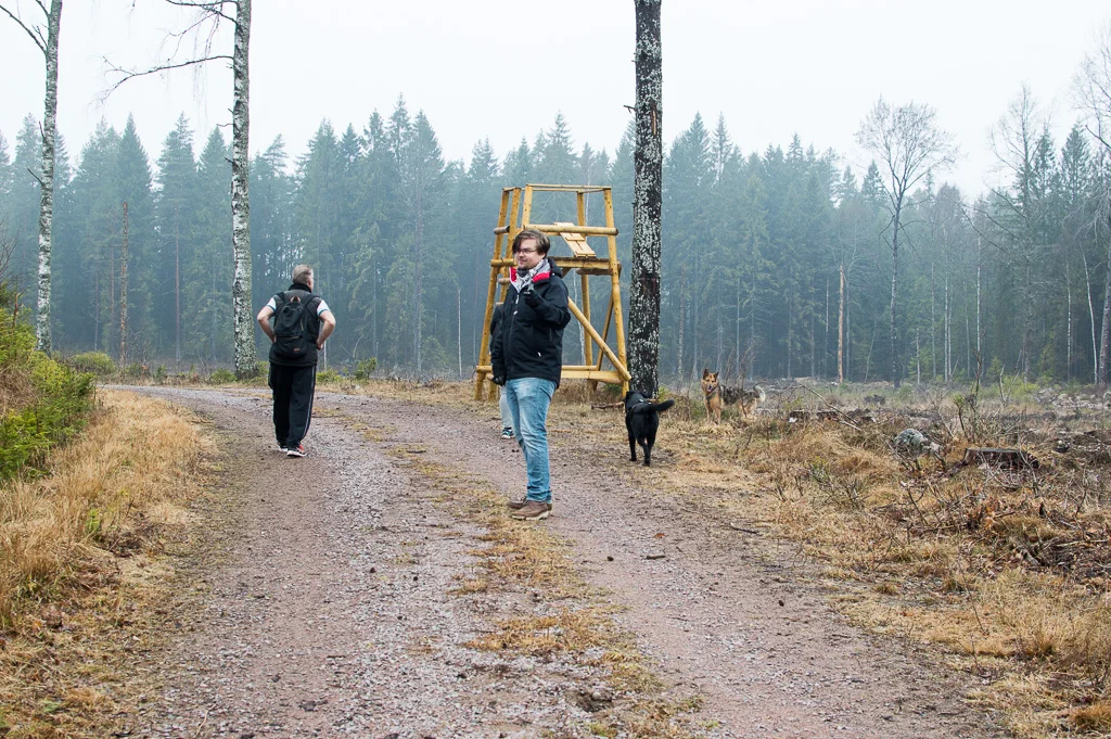 I lördags drog vi i vanlig ordning till skogs, men den här gången hade vi sällskap av två andra promenadsugna tjommar, laddade med kaffe, mackor och hurtighet; pappa och Heidi.